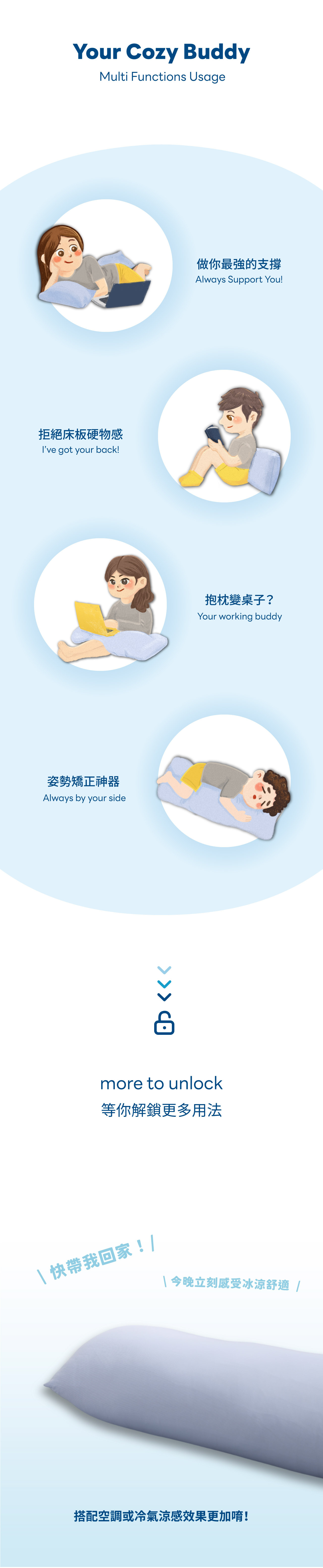 ✓ 多功能設計,可作靠枕、抱枕或腰枕