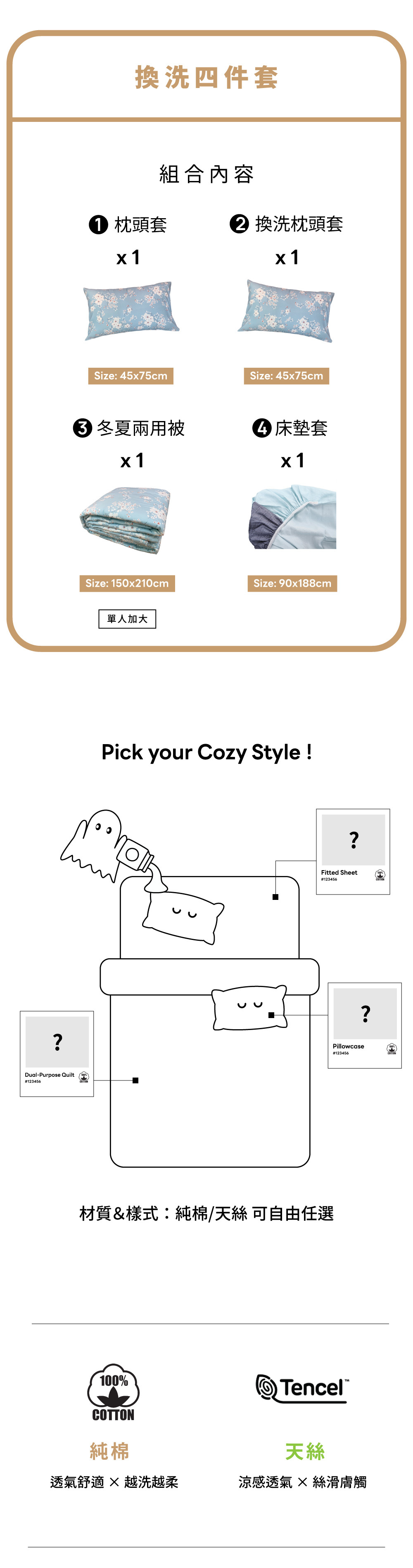 4. 兩用被套 x1 (單人加大 150x210cm)